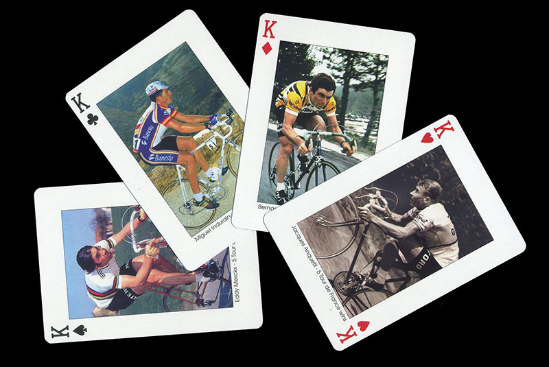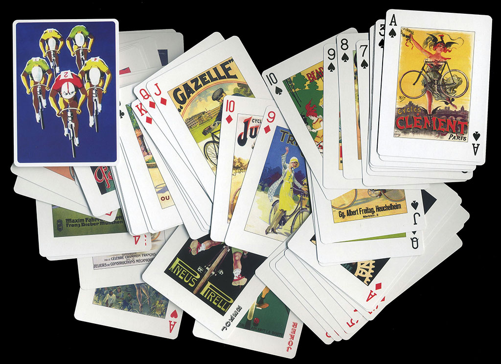 Another card deck portraying vintage cycling posters. This high quality deck includes 4 cycling aces as Kings.