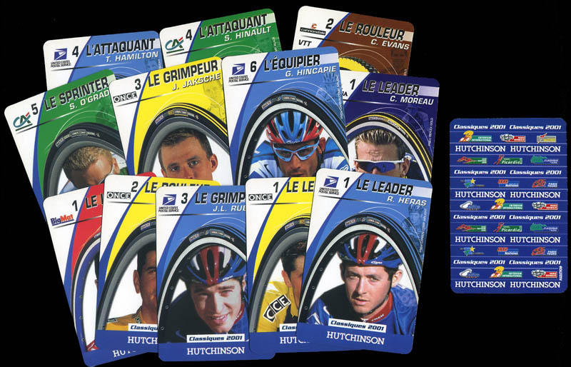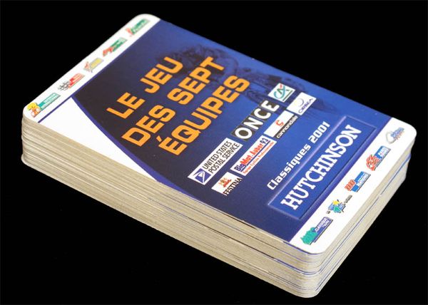 A promotional "Happy Families" game. As is tradition in France in these games, families are of six cards (unlike Anglo-Saxon countries, where families are of 4 cards). In this case each team has a leader, a rouleur, a climber, an attacker, a sprinter and a domestique.