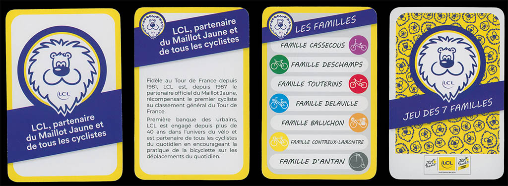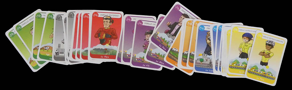 Promotional "Happy Families" card-game possibly (just a guess: if you know better, please let me know) offered at the 2024 Tour de France. The game features seven different families, with just 5 members each, which makes a rather unusual 35-card deck.