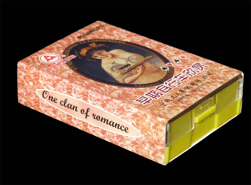 Elusive Chinese vintage cycling posters poker deck. I wonder what they mean by "one clan of romance".