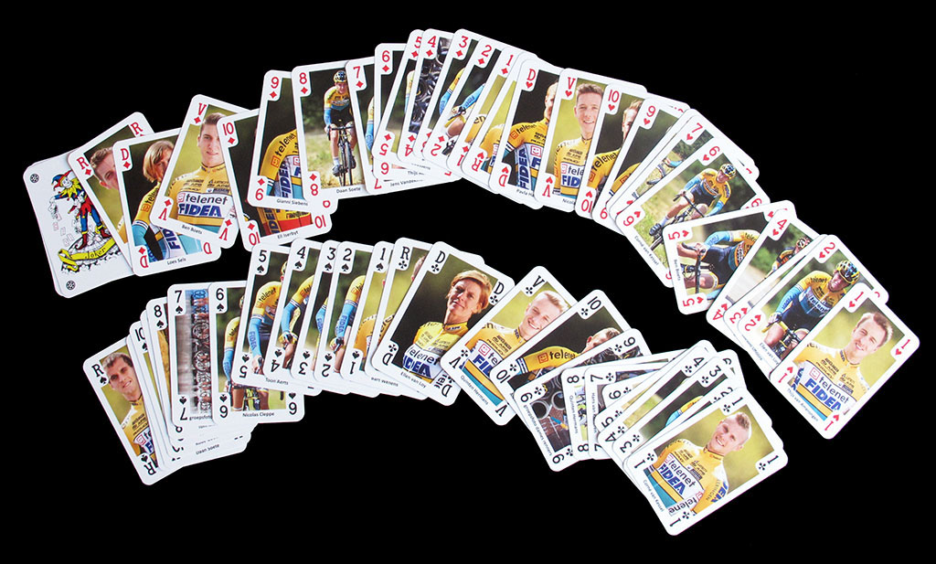 This is a promotional deck for Telenet-Fidea, a Belgium cycling team which focuses predominantly on the cyclo-cross season. The name of the team has changed slightly over the years. The last couple of seasons it was Telenet-Fidea Lions, but at the time of writing (season 2019-2020) it is Telenet Baloise Lions, after Baloise acquired Fidea last summer (we are talking about insurance companies here).