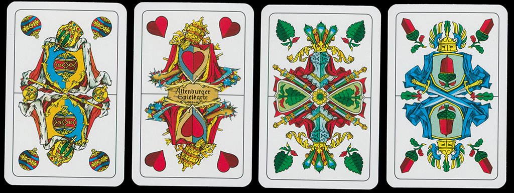 In case you do not know, skat is the most popular card game in Germany and other Central European countries. It is played with a 32-card deck, which can be either of the French (international) type (with clubs, spades, hearts, and diamonds) or with traditional German cards (whose suits are acorns, leaves, hearts, and bells). Furthermore, many regions have their own pattern (Bild) which features their own unique artwork or number of cards.