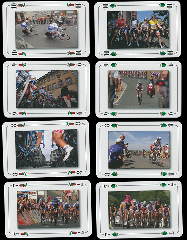 Rare promotional German skat deck, customised for the 2008 Thüringen Women's Tour. The game was produced in Altenburg by ASS. To put things in context, the Thuringen Women's Tour ace was held (under different names) from 1986 (back then Thuringia was in West Germany) almost uninterruptedly until 2024. However, the 2025 edition was cancelled after funding from the state government was withdrawn. At the moment of writing, the future of the race is not clear. On the other hand, Altenburg, in Turingia, is sometimes referred to as "playing card town". The Altenburger Spielkartenfabrik (playing card factory) was founded in 1831. ASS (which stands for "Altenburger und Stralsunder Spielkartenfabrik") is self-described as "the oldest known company in the field of playing card development and production in Europe".