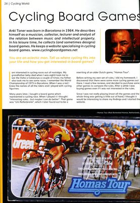Now, the good news. he board games expert and collector extraordinaire Bruce Whitehill has offered me a place on his website The Big Game Hunter so I could introduce my collection to his visitors. You can either browse his website (recommended), look on the left column index under “Collecting Games” and look for "Cycling Board Games" or go directly to the cycling games section by clicking here. He has added a few pictures and even a game not present on my site, so the visit is interesting even for those among you who know my site by heart.
