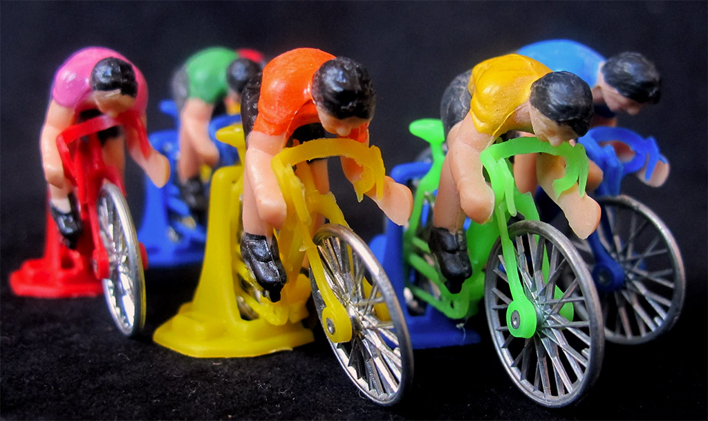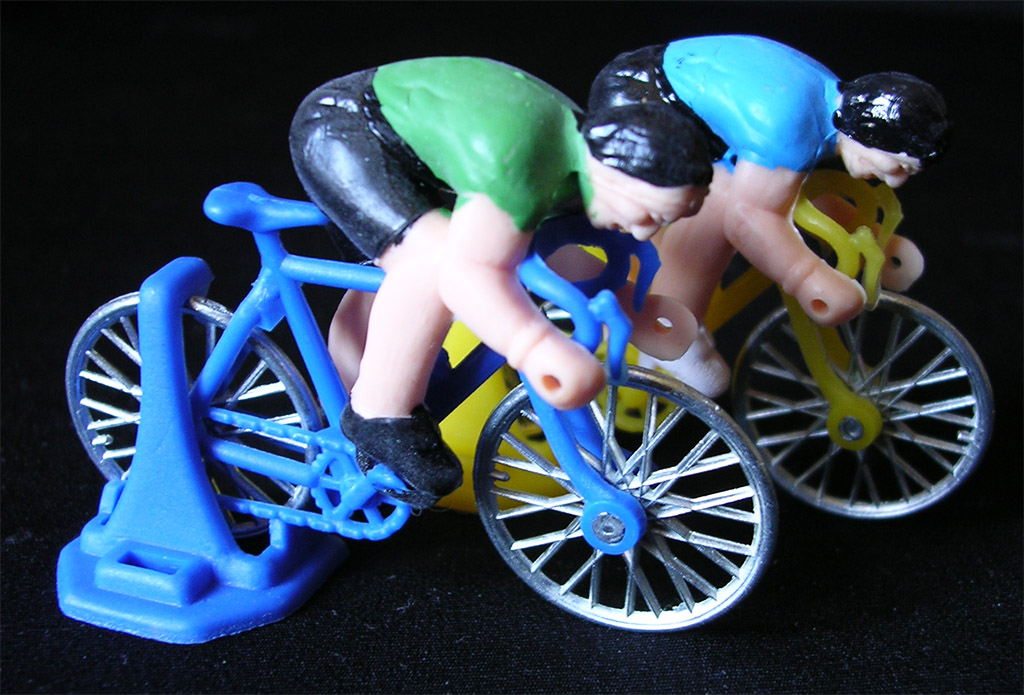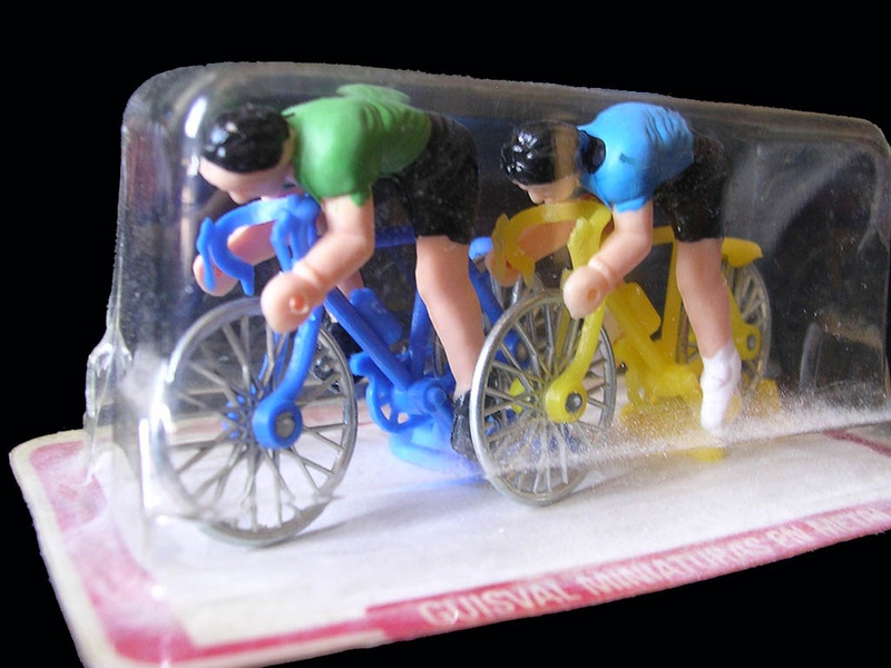 Anyway, Guisval riders are 52 mm long and were sold in blisters of two riders, who looked liked they were trying to pedal their way out of the blister.