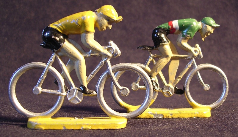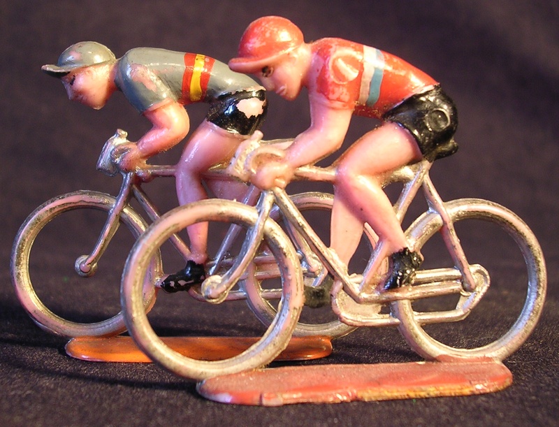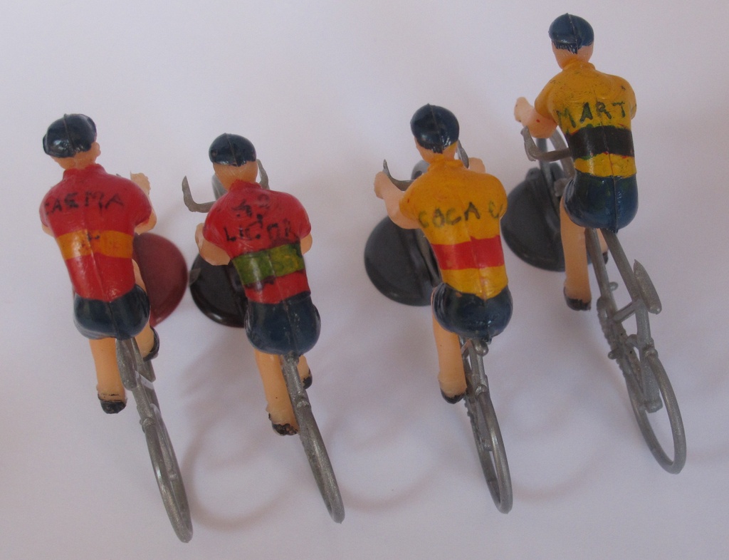 Painted cyclists were most often meant to be sold in toy stores, as opposed to the the cheaper unpainted cyclists meant for the street vendor circuit. Anyway, when found these days, they are often difficult to identify.
