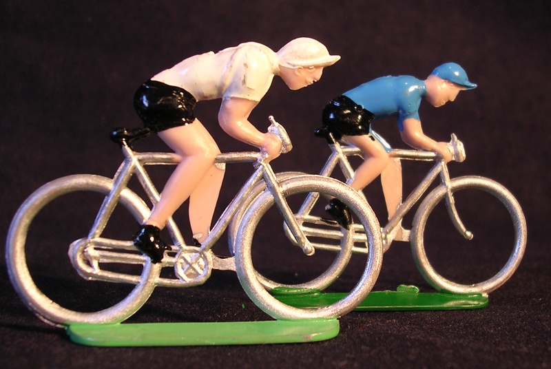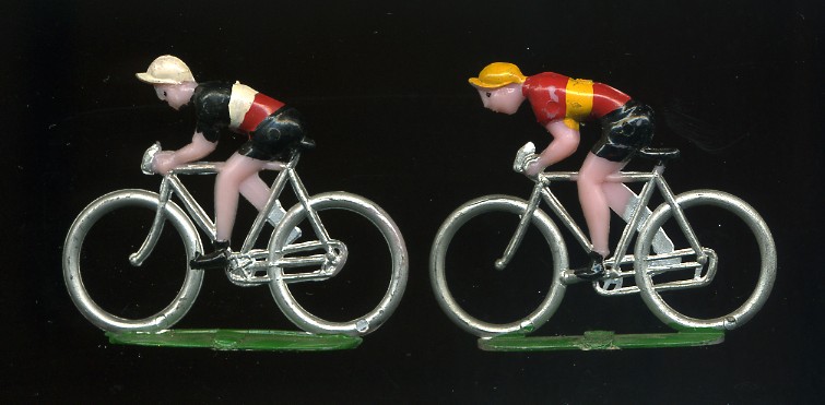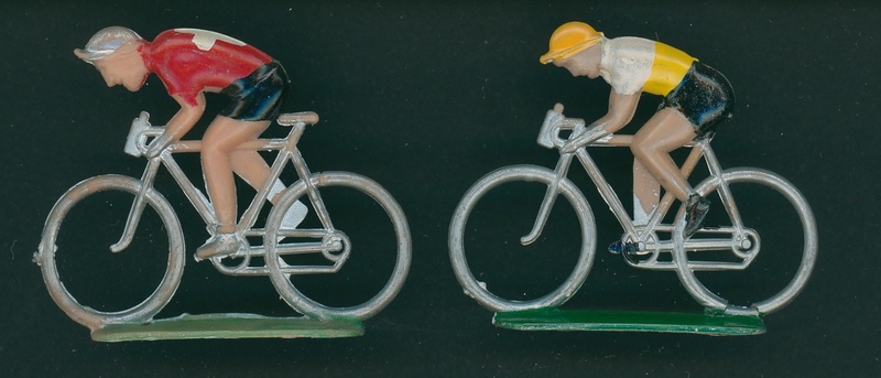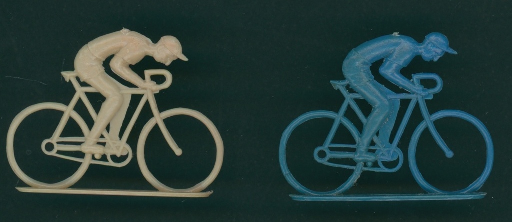 UPDATE 2025: Marc Radenac confirms that there were Roger plastic cyclists with metal bikes and detachable bases. He sends one (thanks!!!), the one on the right on the picture above. The Roger metal bicycle is somewhat bigger than the Spanish plastic one, and the Roger cyclist is somewhat sturdiest, but they are interchangeable if you feel like it.