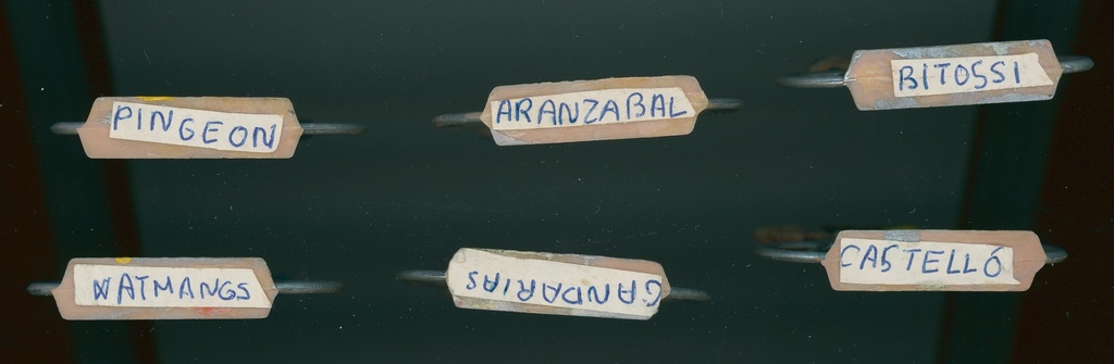 These riders are flatter than the rest featured in this section. They are almost 2-dimensional (I should have included a zenital picture), not so dissimilar from the mid-sized Montaplex set. However, these are made of stiff (thus easy breakable) plastic. The former owner inscribed the names of late-60s-early-1970s cyclists. Some of them were not so famous outside Spain (Eduardo Castelló, Jesús Aranzabal, Andrés Gandarias). Wagtmans was not so well-known either (and has his name misspelled). I guess the owner had a much bigger peloton and/or a penchant for obscure riders.