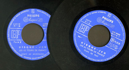 There are even advanced rules. You can play a team competition, and a full Tour de France, playing the record many times, of course. I wonder what happens when everybody knows the record by heart and can anticipate exactly when each message will be heard. I guess the players will adjust the speed of the game to pass the die at the most convenient moment... provoking accusations of cheating, big trouble, and maybe a broken record player!