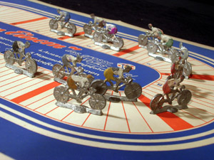 What is surprising is that the boxed version should be the expensive one, thus more elaborate, and it is not so. The riders that come independantly in the smaller boxes are, at least, better painted than the ones in the complete version of the game. Which makes me suspect that there must be more versions of this game around.