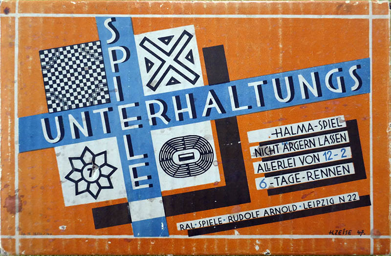 Unlike the Rudolf Arnold board mentioned above, in this case it is the cycling game that is coupled with the Halma board, while "Nur nicht ärgern lassen!" is coupled with "Allerlei von zwölf bis zwei". However the coincidence is important enough to make me think that the cycling game was probably made by Rudolf Arnold too. Whether it was made before the war (in which case the parcheesi/halma game would be a later reprint) or not is hard to say until I find more information.