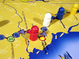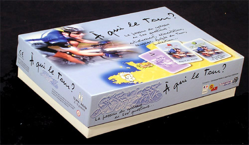 The six categories are: "Langage cycliste", "Alimentation et entrînement du cycliste", "Histoire et épopée du Tour de France", "Risques du Dopage", "Incidents" and "Chance". The latter do not imply a question, they are what their name says, chance cards with which you may advance or go back some squares.