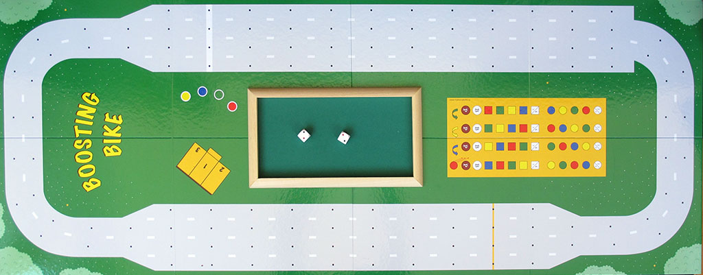 Boosting Bike is a game invented, developed and produced by Jos Noben, from Antwerp. Jos has spent many hours to get a peloton of cyclists moving in a realistic way around the board, to have a "peloton feel" in the way riders move. And I think he has succeeded pretty well. Also, as a result of his efforts, he has developed some unusual game mechanics. In these days when new games that are too similar to one another, it is a blow of fresh air to find a game that explores different paths.