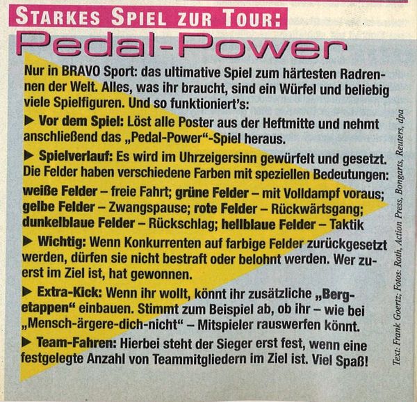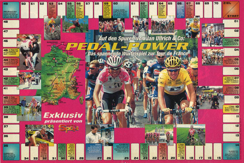 This is a game included in the number 15 of German sports magazine Bravo Sport, dated July 12th 2001. Bravo Sport was (and still is) is a German sports magazine for young people dedicated mainly to soccer, but of course in 2001 Jan Ullrich was one of the favourites for the Tour de France and therefore the sport had a burst of popularity in Germany.