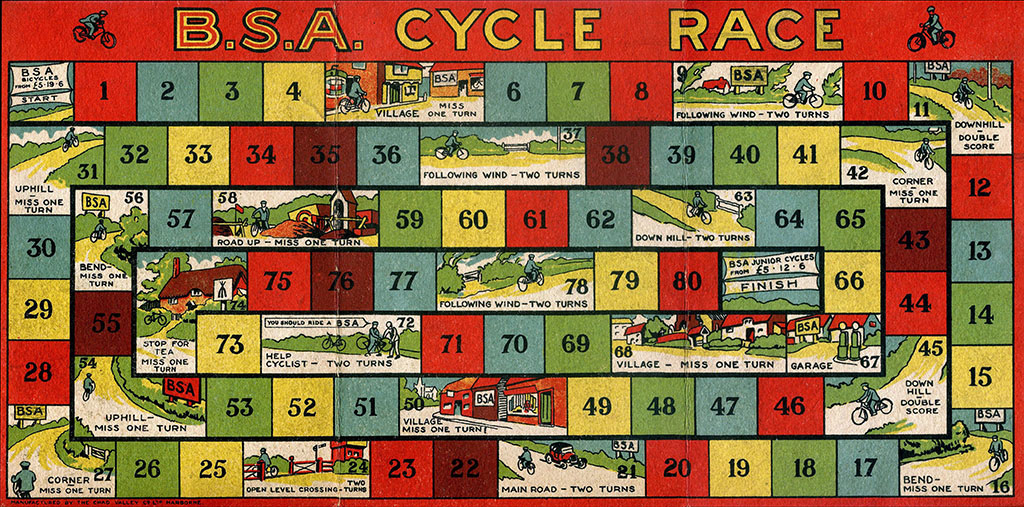 UPDATE 2024: Richard Ballam dates the game from "ca. 1935", and shows that it has at least four cyclist counters. Thanks Siegfried for the link.