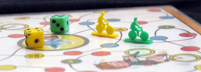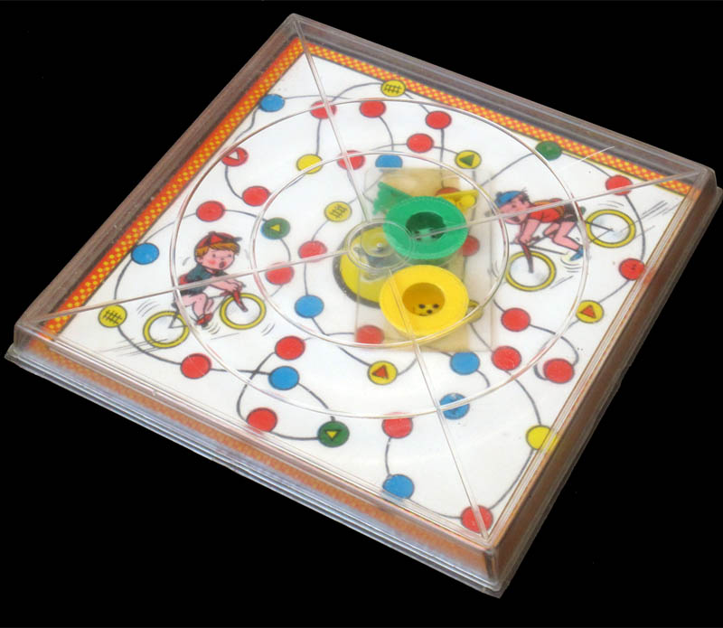 Small (15 x 15 cms) Spanish game, belonging to series of games that includes the usual games (chess, checkers, ludo, game of goose...) as well as a car race and a football game (which I have never seen).