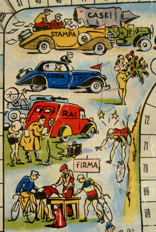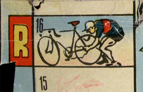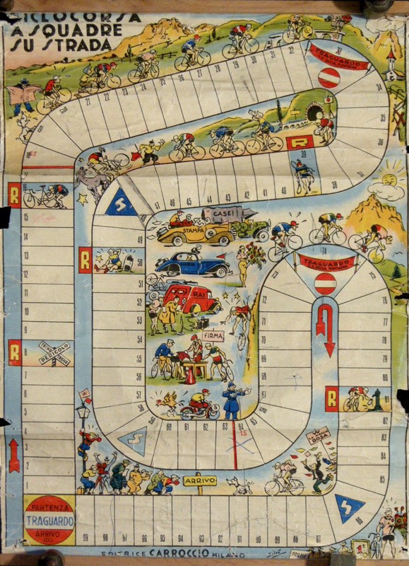 One last word about the datation of the game. Bartali retired in 1954 while Ercole Baldini started his career in 1957 and Arnaldo Pambianco in 1958, so the names of the riders cannot be used as a reference (though maybe the names were written before Coppi's death, which was in january 1960, but that is just a guess). By the way, I don't even know who Oliver or Linetti are, but I do declare that Miquel Poblet is my all-time favourite cyclist.