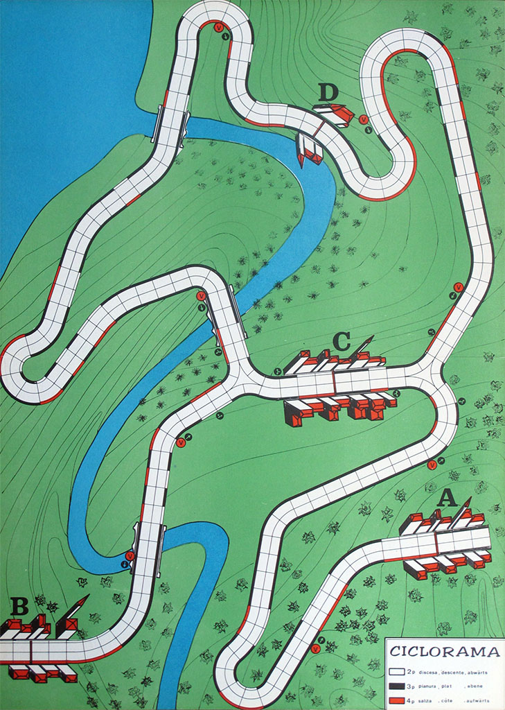 The rules are trilingual (Italian, French and German). I would generally assume that, the game being Italian, in case of doubt the Italian rules should be the original. However, in the case of this game I am not so sure, since there are some inconsistencies in the italian rules (see below). The problem is that the French translation is also problematic (it is clearly a translation, the idioms are sometimes wrong, and it mentions a "course contre la montre" which is clearly a mistranslation), and my knowledge of German is not good enough to determine if the rules are correct.