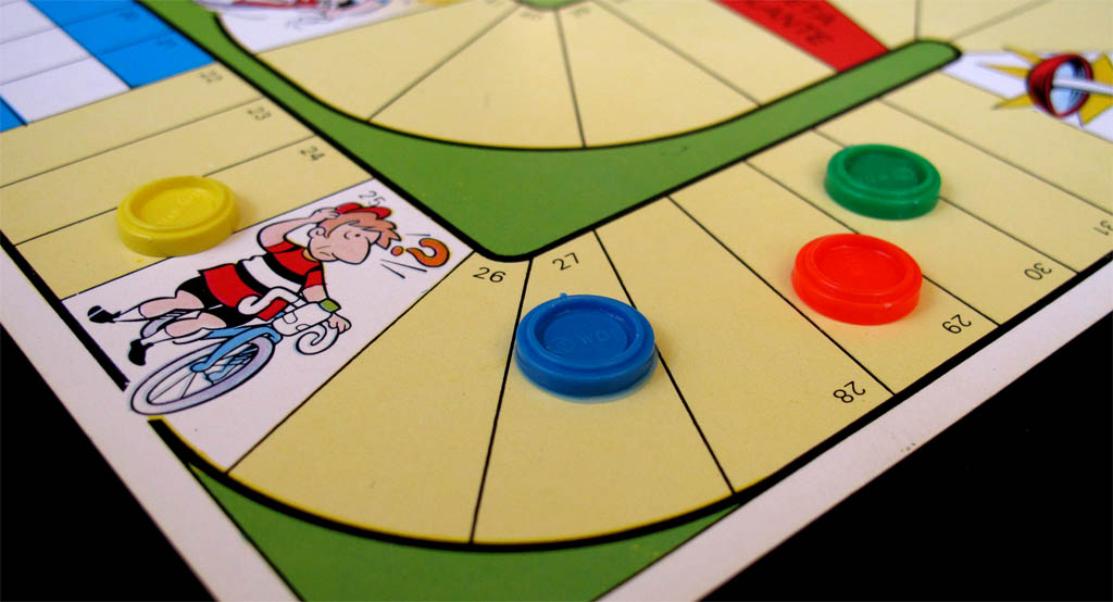 As can be expected, the rules are simple and quite typical. The orange part of the board are the mountains, in which youy can only have a rider per square (but overtaking is allowed).