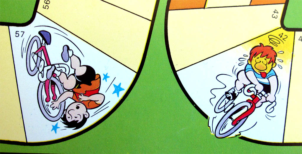 Games' compilation boxes have always been popular in Spain, and they occasionally cycling games. Here is another example. Santa Elena made 4 boxes, containing 15, 25, 35 and 45 games. This cycling game appears in all except the smaller box.