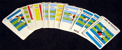 Generally, an uninspired cycling game is a copy of the game of goose. Not this one. We face here a shameless copy of "1000 bornes", with "puncture" instead of "no gas". Of course, I am not going to say "1000 bornes" is a bad game. Not at all. It's just that I stopped loving it when I was eleven.