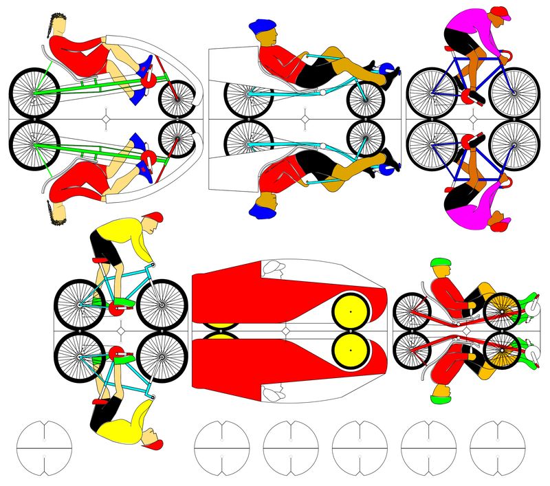 Cut-up riders are also provided. They are basically the same riders included in the Cycle Tour game. If you want to download the files to print them in 3D (licensed under the Creative Commons 3.0 Attribution license), you will find them here.