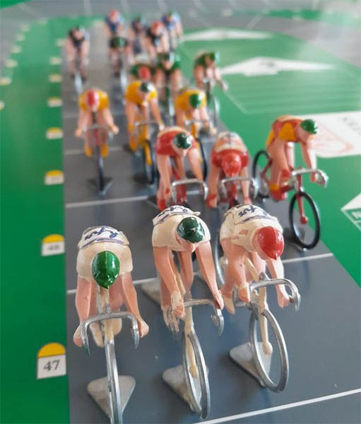 As you have probably noticed, the cycling figurines depicted on the cards are made by the Fonderie Roger. The number in the upper right corner of the cards is the time you lose if you do not get rid of that card at the end of the game.