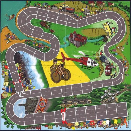 This game represents a a one-day race, in which cyclists must complete three laps and a half around a circuit (not unlike the World Championship), with prices (money) at each lap. The winner is the team who got more money, not the one arriving first after the last lap. It is a regularity race.