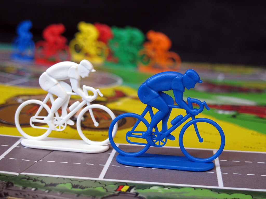 The twelve riders are divided between 2, 4 or 4 players, that is why one of the teams features three different riders, which can be added to the other teams in a three-player game.