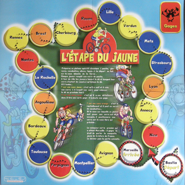 Included with the game is a yellow cap (as in the Laurent Fignon game), but here the legend on the cap says ""Vainqueur de la biture de France" ("biture" means alcoholic drink).