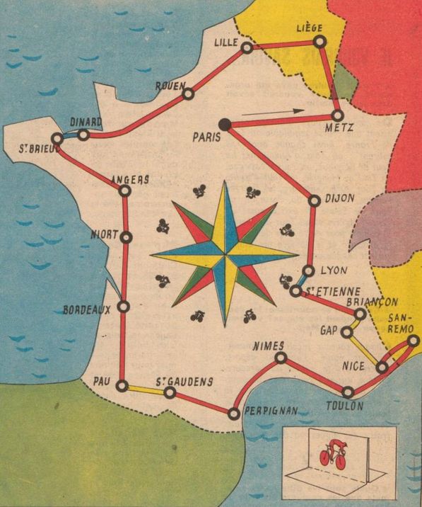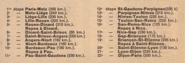 The 22 stages of the 1950 Tour de France (won by Ferdi Kübler, by the way):