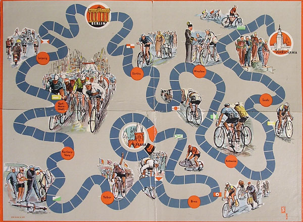 Die Friedensfahrt (aka "Course de la Paix") was the most important cycling race benind the iron curtain. It started in 1948 (and is still running: in 2006 it was the 58th edition, though the importance of the race is much lesser, and it is not run by national teams anymore). Of course, the race needed a companion board game!