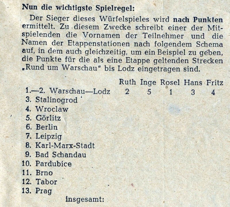As simple as the game may be, it represents a stage race game not only because it is named after one, but because stages are scored individually (and points are eventually added to determine the game winner). As you can see, the game follows the 1954 Peace Race, even offering apologies for skipping the first stage (a circuit around Warsaw, actually). It is historically relevant to notice the stage at Stalinogrod, which is the name Katowice received between March 7th 1953 and 10 December 10th 1956 (of course in honour of Joseph Stalin, leader of the Soviet Union).