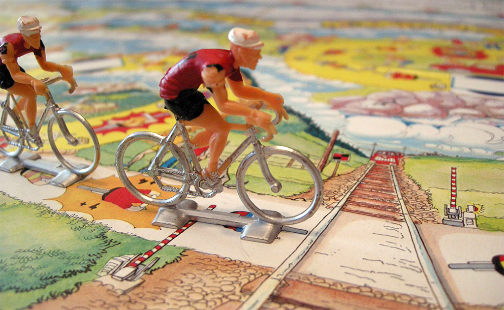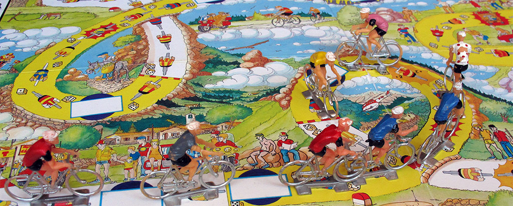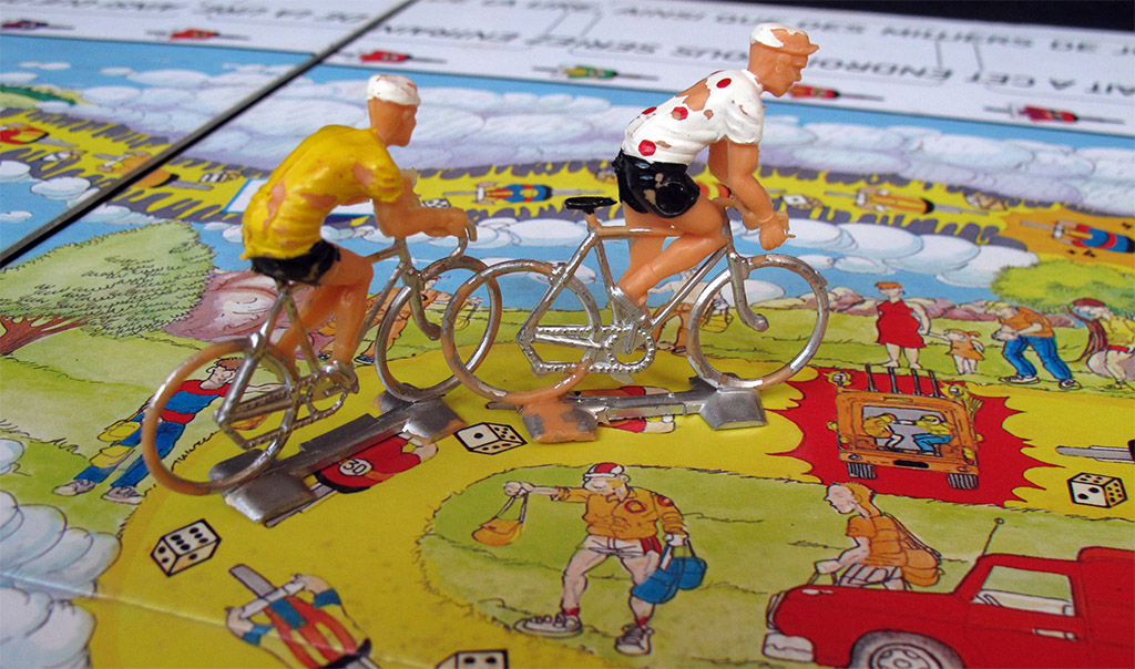 However, the game is very simple, Players manage teams of two riders. They roll two dice for each rider (except on certain parts of the track, such as climbs, where riders move with only one die) and move the riders accordingly.