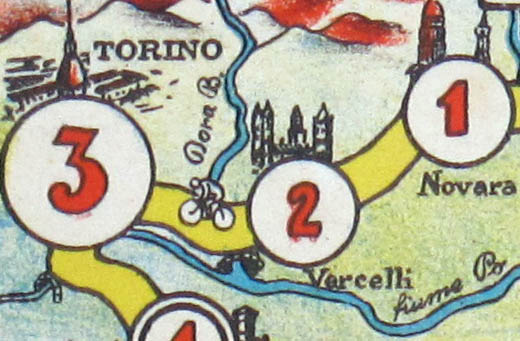 The game is not dated but it follows the stages of the 1948 Giro d'Italia (which was eventually won by Fiorenzo Magni with just 11 seconds advantage over Ezio Cecchi, the smallest gap between first and second classified in the history of the Giro).