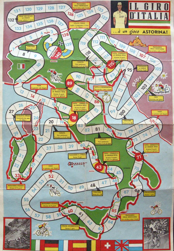 Another 1950s Giro d'Italia map game. This one was sold in a small envelope. Once unfolded, the game measures 35 X 50 cms.