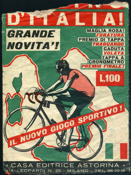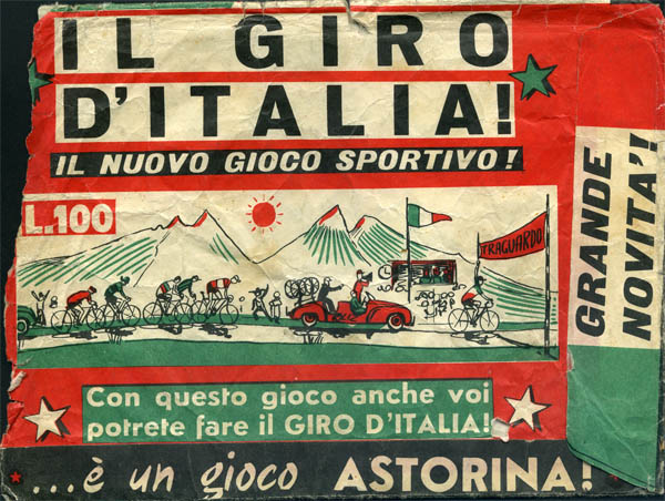 The clue for dating the game is the picture of the rider on the bottom right corner. Though the picture is not too good, I would say that it is Gastore Nencini, winner of the 1957 Giro d'Italia. My guess (and it just a guess) is that the game features the winner of the last edition of the Giro, in which case it might be a game made for the 1958 season.