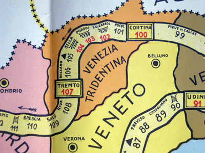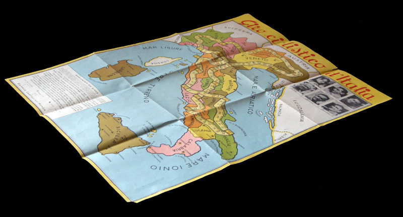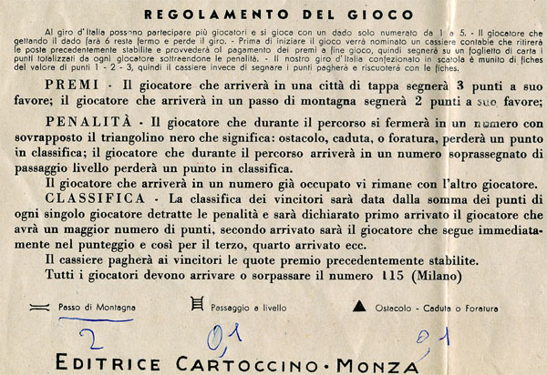 PS: If I had examined the board when I wrote the paragraphs above, it would have saved me some work. The game follows the stages of the Giro of 1948... It can be assumed that it IS from 1948.