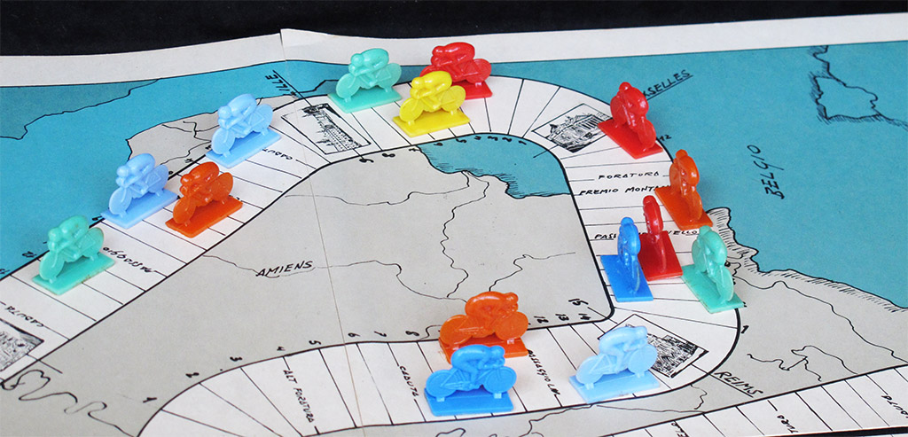 The disposition of the road is quite strange in both cases. The central part of the Tour de France board is empty, and the bottom quarter of the Giro d'Italia is useless too (which is a chance, since one of the panels is missing in my copy).