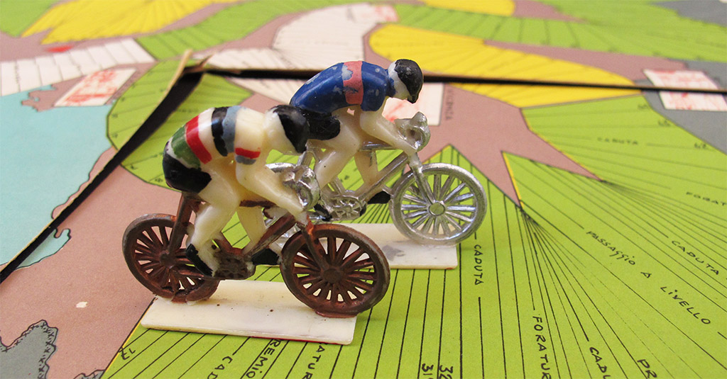 These are the two big riders found in the "Ciclocorsa a Squadre" box. Too big for this board, aren't they?