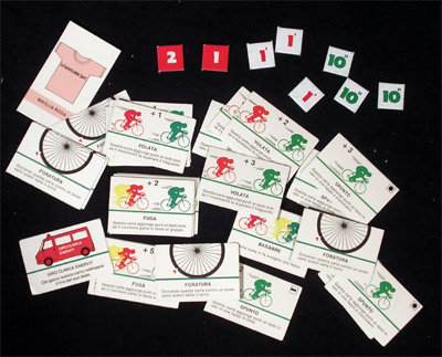 What is interesting is that the race is not run on the bigger central part of the board but in the 4 small circuits. Not all the stages of the Giro are run but only eight, which are chosen by the players according to their tactical interest.