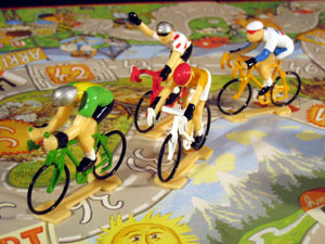The strongest point of this game are the big colourful plastic riders, which have probably been an inspiration for the ones in the Richard Virenque game.