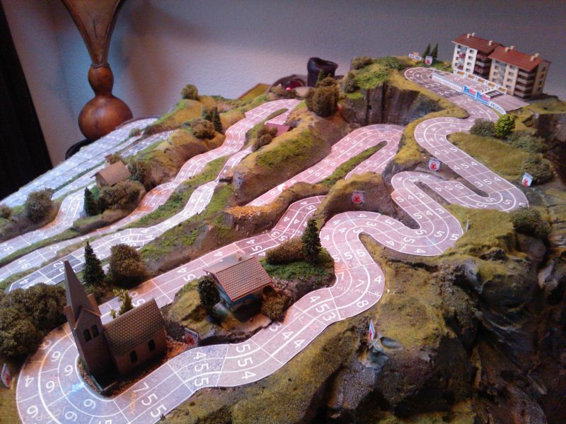Wow! This is an incredible 3D Alpe d'Huez board for Homas Tour Pro made by Hille. You can see more images here: http://wielerbordspel.messageboard.nl/forum/viewtopic.php?f=9&t=643