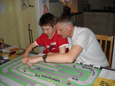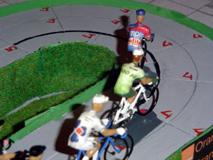 Ludo Nauws keeps doing nice work. These is a new set of riders using Fonderie Roger's small figurines, and hardboard (4mm thick) track parts for a Tour de Belgium starting in September 2009. Learn more about this project here.