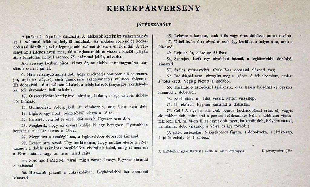 By the way, as far as I know Kerékpárverseny Társasjáték means "Cycling Race Board Game".