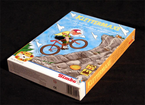 Simba is an Italian maker, but my copy is definetely German. This quite unusual game represents a mountain bike race, in which teams of four riders struggle to reach the top.