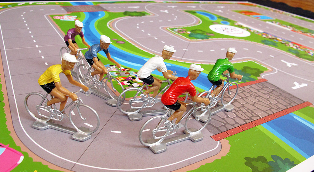 Each team is composed of three riders (Leader/Climber, Rouleur, Sprinter) with different abilities. Provided stickers should be pasted to the riders wheels in order to identify them. Don't look for them in the pictures, though: I generally unpack/cut/paste all the elements of games as if I was going to play them (though most of the time I do not play them for different reasons). However, this is not the case. For the pictures I opened only on set of riders. That is why you only see one rider from each team and why these riders do not have pasted stickers.