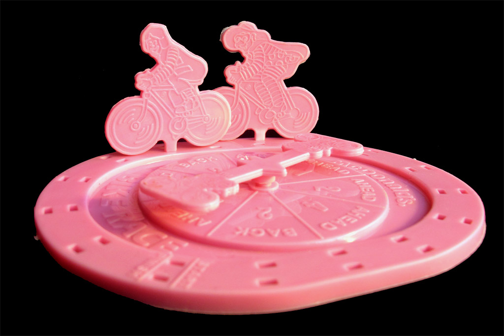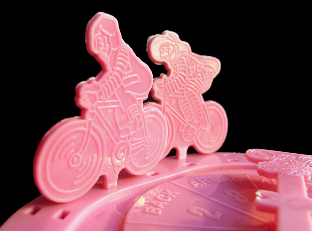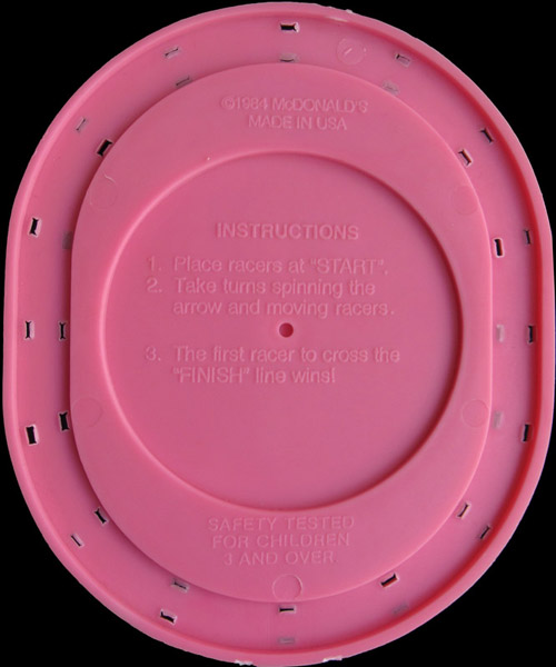 This small game (10 x 8 cms aprox) was a McDonalds' bonus somewhere in the USA sometime in 1984. For lack of a better idea, I will include it under track cycling games. After all, the track is oval and there are no mountains.