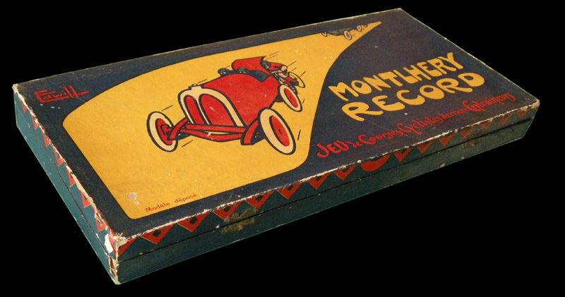 Very rare game from the amazing "Collection Pierre & Bilou". It represents a paced race where cyclists are paced by cars instead of dernys ( or even tandems, which was not unusual in the interwar period).