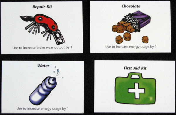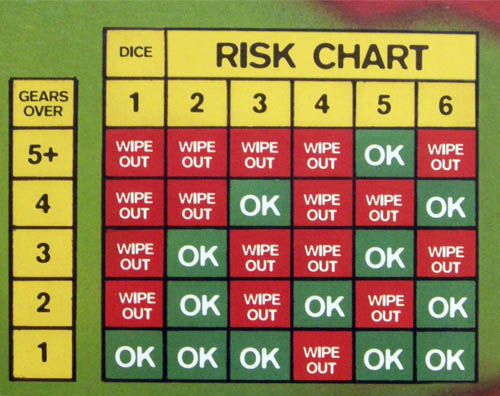 However, riders must stop in hazard squares (even if they have the gears to go further) and take a risk card.